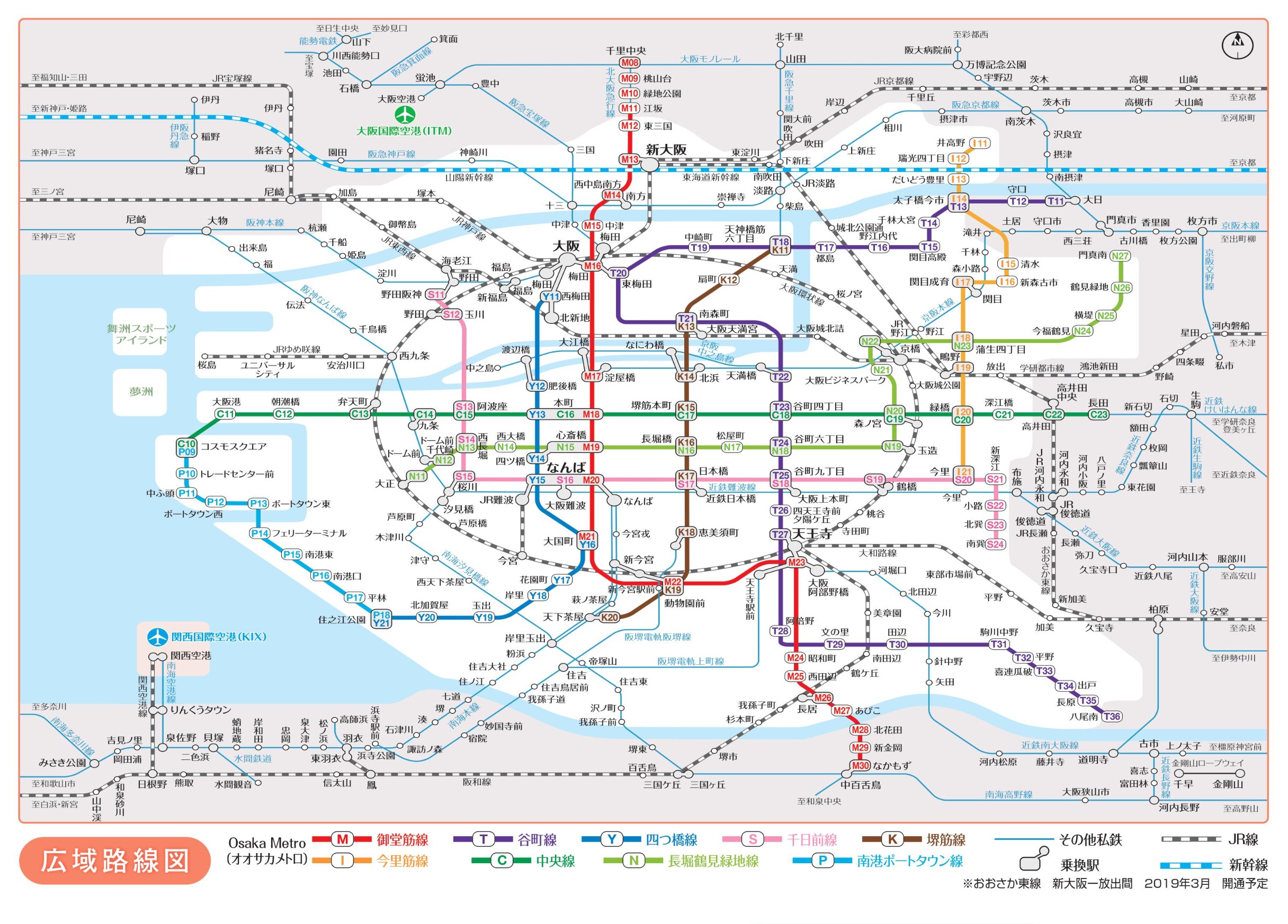 Osaka Metroや私鉄、JR、大阪に乗り入れるすべての電車路線図です。