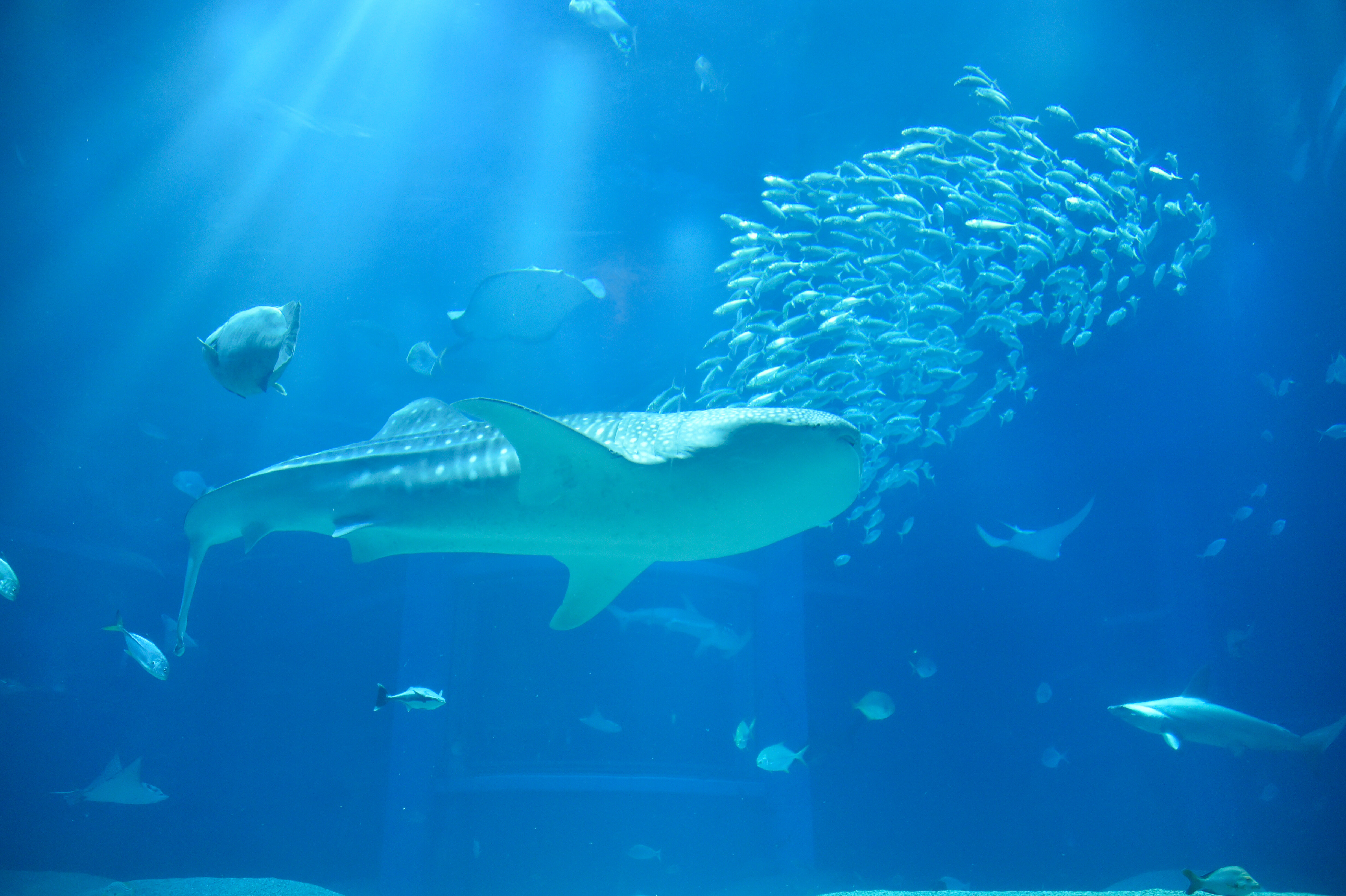海遊館は、世界最大の海、太平洋とその周辺海域の自然環境を忠実に 再現した水族館です。 太平洋を取り囲む環太平洋火山帯の各地域を選び、大水槽で再現しています。 館内の水槽は、それぞれが実際の太平洋の地理的な位置に相当する ように配置されています。ジンベエザメが悠然と泳ぐ建物中央の 「太平洋」水槽をはじめとし、滝が流れ草木が茂る「日本の森」水槽や カマイルカたちの暮らす「タスマン海」水槽などの各水槽で約620種 30000点の生き物たちを飼育展示しています。 クラゲの魅力を追求した「海月銀河」や、 ワモンアザラシなどが暮らす「北極圏」水槽も人気です。